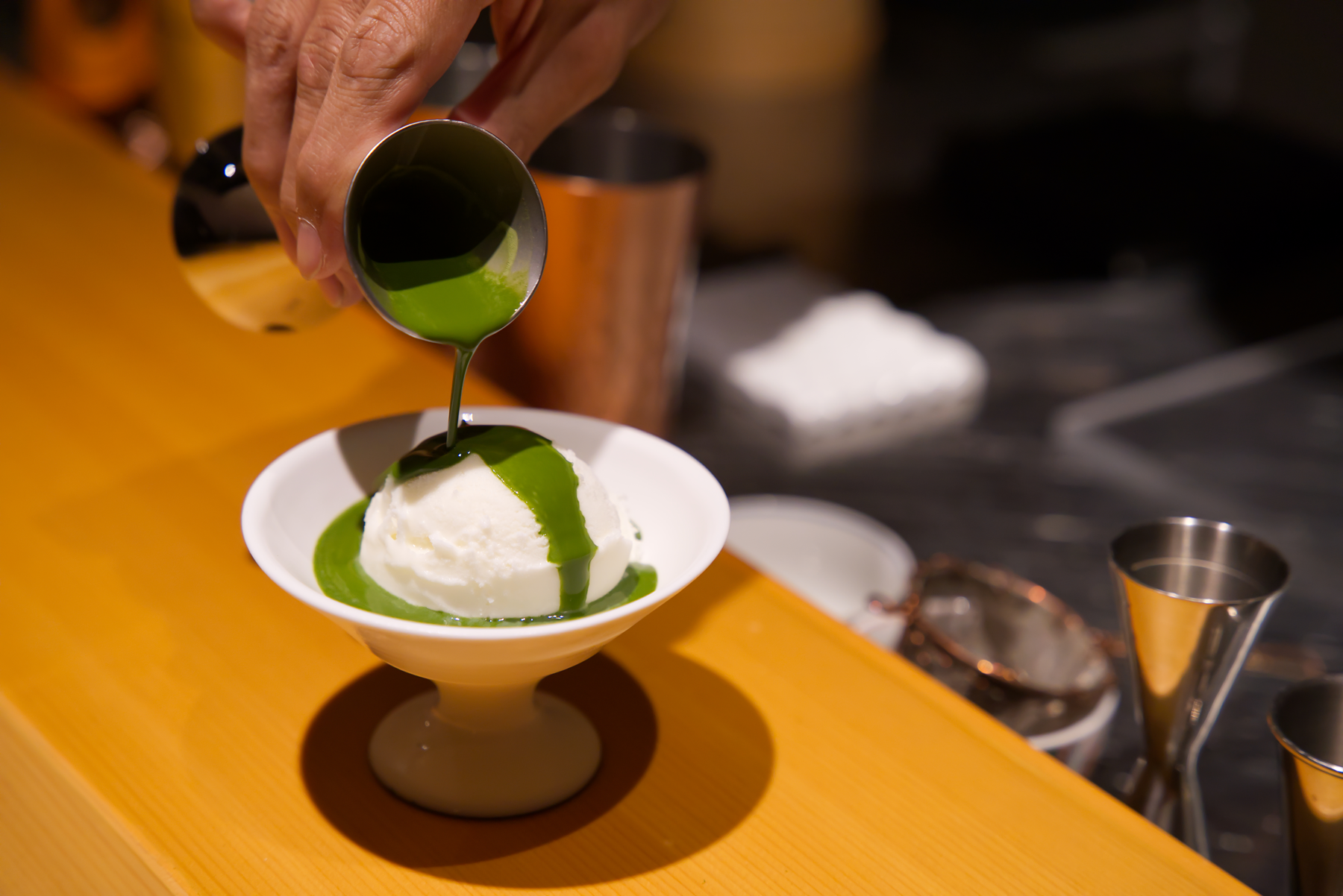 「一杯のお茶」を最高な形で楽しんでいただけるよう、飲み口の薄さや広さなどお茶の特徴を感じやすい形状のグラスや器で提供し、一夜で佐賀の器文化を堪能できるよう嬉野の肥前吉田焼きや有田焼を様々な場面で楽しんでいただきます。